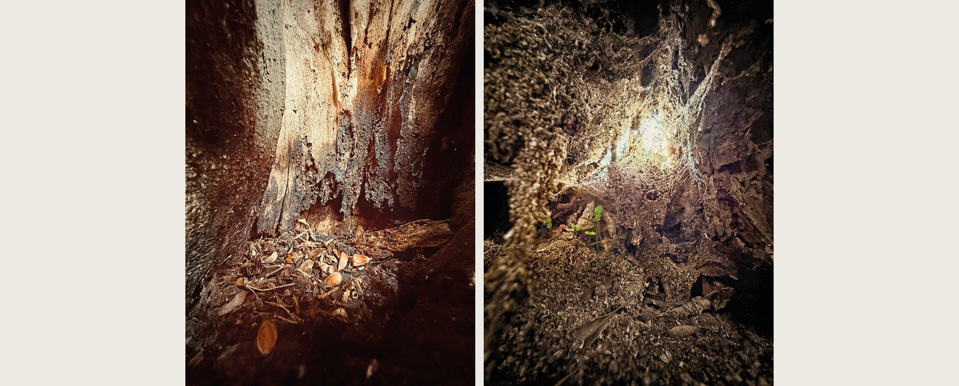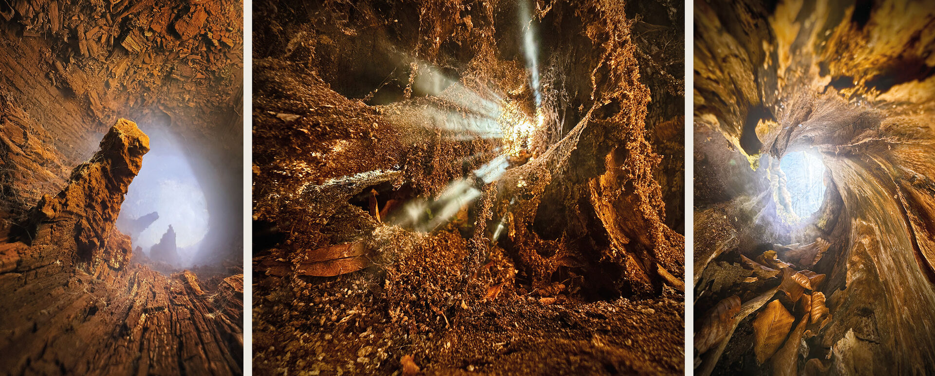 Atrium Sacrum ist eine fotografische Reise ins Herz des Totholzes. Die Serie erkundet Baumhöhlen als sakrale Räume und archaische Tempel der Natur, geformt von Käfern, Pilzen und Mikroorganismen. Durch mystisches Licht werden die Höhlen zu einem Mikrokosmos, der Vergänglichkeit und Erneuerung vereint. Ein Grenzbereich zwischen Werden und Vergehen.